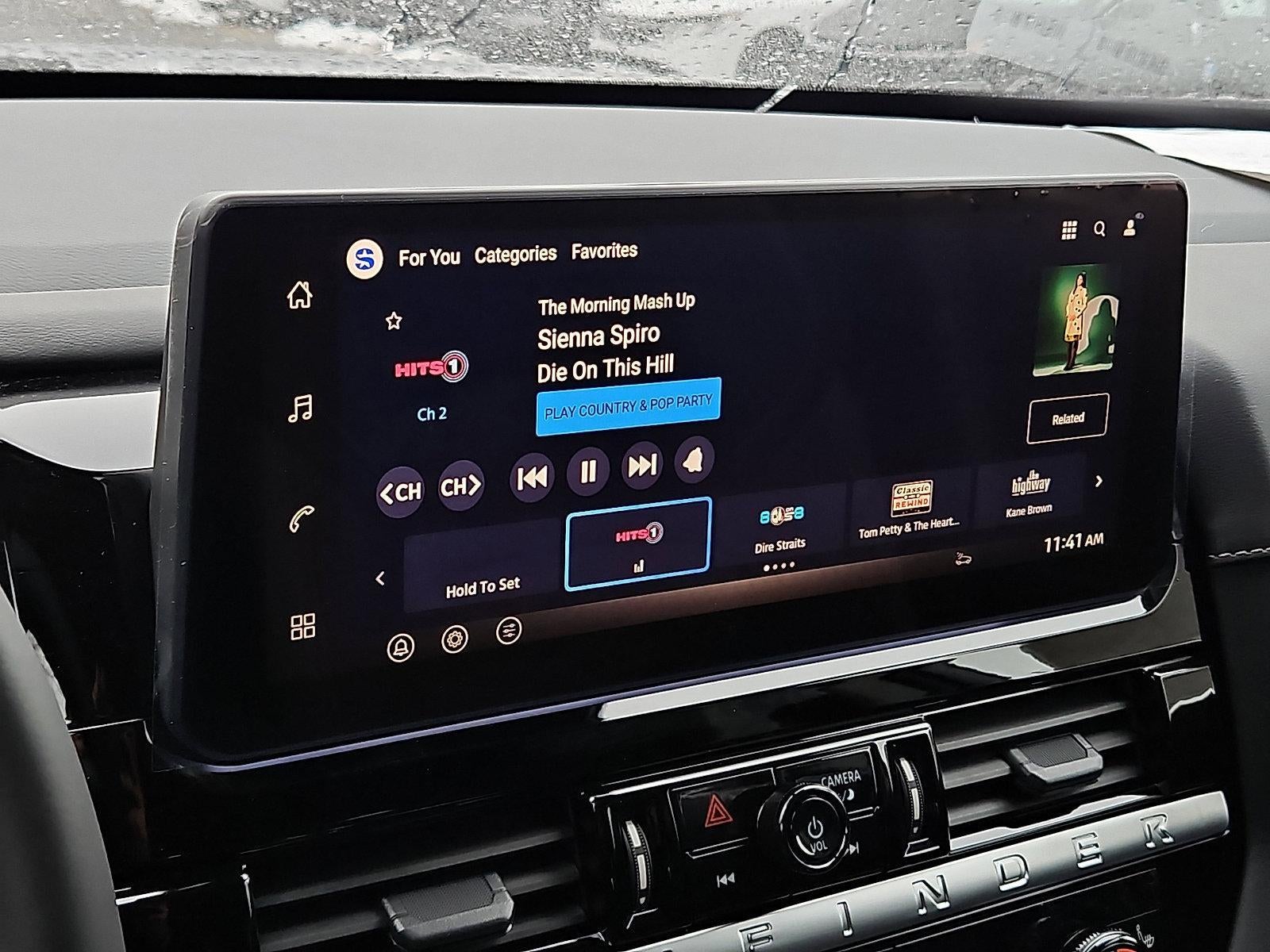- Radio: AM/FM Audio System w/NissanConnect -inc: 6 speakers, 5G Wi-Fi hotspot, wireless Apple CarPlay and Android Auto, 12.3" center touch-screen display, SiriusXM satellite radio, 2 front USB connection (1 type C charge and data ports), Bluetooth® hands-free phone system, streaming audio and messaging and hands-free text messaging assistant