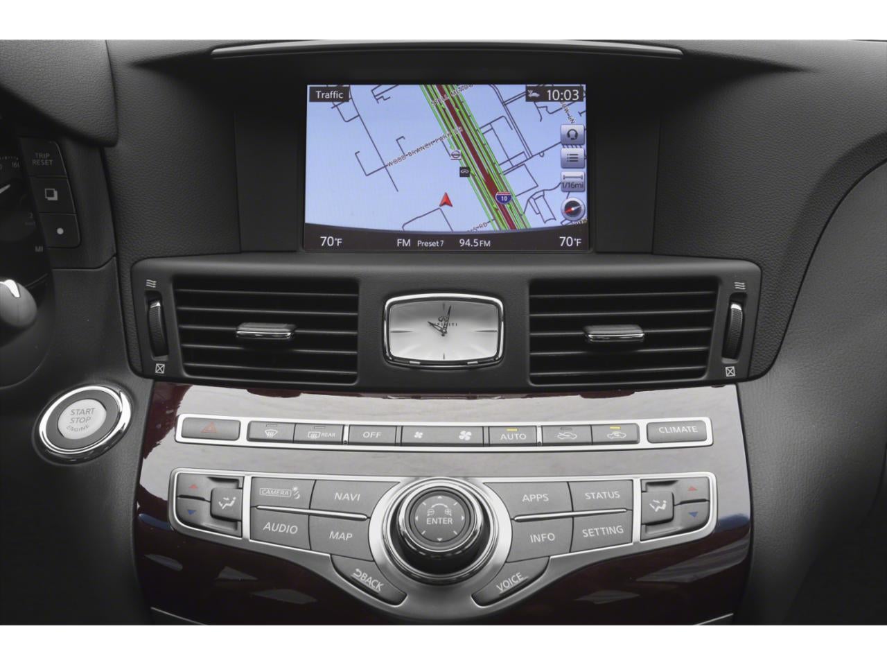- Radio: AM/FM/CD w/INFINITI InTouch Navigation -inc: MP3 playback capability, Radio Data System (RDS), speed-sensitive volume control, 8" VGA LCD color touch-screen display, lane guidance, 3-D building graphics, INFINITI InTouch services select w/4 year complimentary trial access to convenience services, INFINITI InTouch services premier w/12 month complimentary trial access to safety, security and convenience services, INFINITI voice recognition for audio, navigation and vehicle information systems, SiriusXM satellite radio w/90 day complimentary trial access, SiriusXM Traffic w/real-time traffic information w/4 year complimentary trial access, SiriusXM Travel Link w/4 year complimentary trial access to fuel prices, weather, movie listings, stock prices and sports scores, streaming audio via Bluetooth® wireless technology, USB connection port for iPod interface and other compatible devices, steering wheel-mounted audio controls, Active Noise Control (ANC) and Bluetooth® hands-free phone system