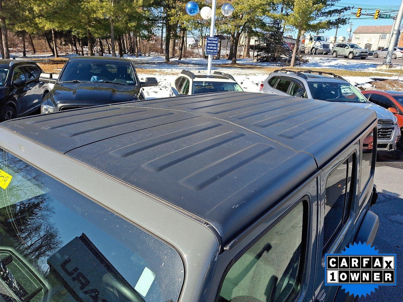 The exterior of this Wrangler Unlimited Sport S exudes rugged style, with a sleek Gray paint finish and a Black 3-Piece Hard Top that provides both open-air freedom and all-weather protection. Step inside and you'll find a well-appointed cabin with premium amenities, including the Uconnect 4 infotainment system with a 7" touchscreen, Apple CarPlay, and SiriusXM Satellite Radio.