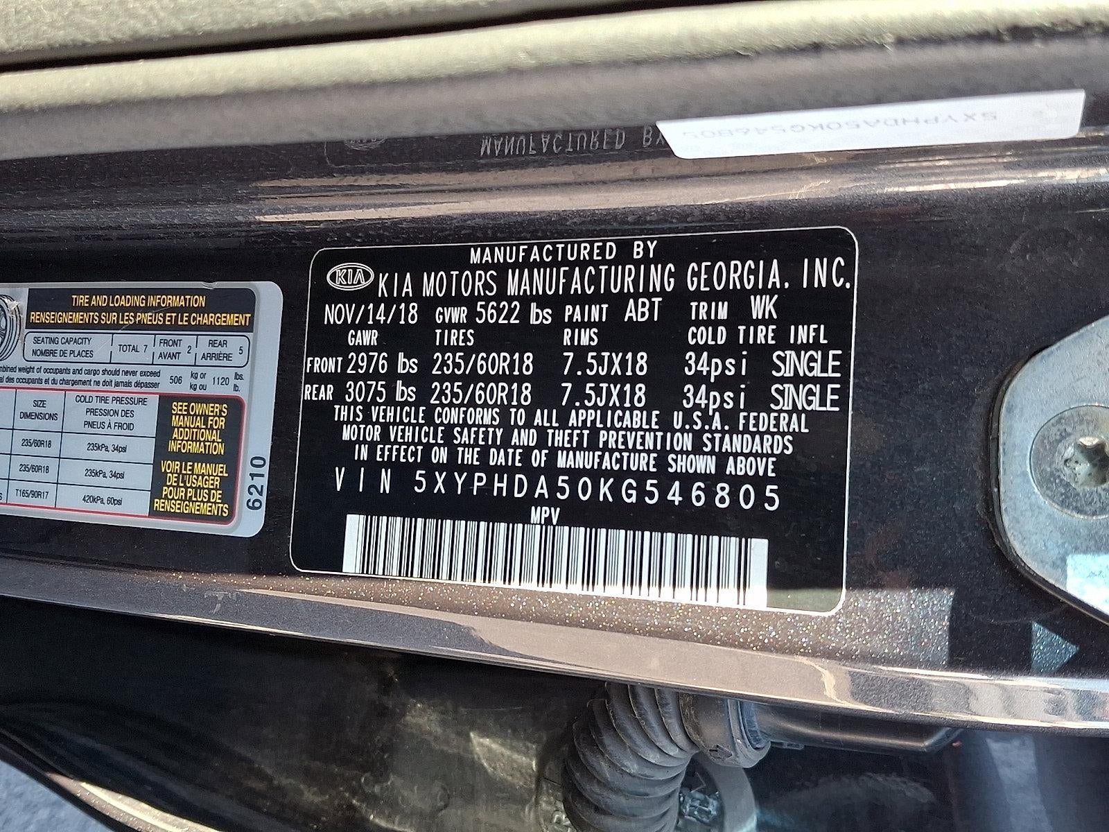 2019 Kia Sorento EX Platinum Graphite *Schedule a test Drive at your home or office*, AWD, 110V Inverter, 18" x 7.5" Alloy Wheels, 2nd Row Shade Curtains, 3.51 Axle Ratio, 3rd row seats: split-bench, 4-Wheel Disc Brakes, 6 Speakers, ABS brakes, Air Conditioning, Alloy wheels, AM/FM radio: SiriusXM, Apple CarPlay & Android Auto, Auto-dimming Rear-View mirror, Automatic temperature control, Brake assist, Bumpers: body-color, Cargo Net (Envelope), Carpeted Floor Mats (7-Passenger), Chrome Roof Rails, Delay-off headlights, Driver door bin, Driver vanity mirror, Dual front impact airbags, Dual front side impact airbags, Electronic Stability Control, Emergency communication system: UVO3, EX Touring Package, Exterior Parking Camera Rear, Four wheel independent suspension, Front anti-roll bar, Front Bucket Seats, Front Center Armrest, Front dual zone A/C, Front fog lights, Front reading lights, Fully automatic headlights, Garage door transmitter: HomeLink, harman/kardon Surround Sound Audio System, Heated door mirrors, Heated Front Bucket Seats, Heated front seats, Heated Steering Wheel, Illuminated entry, Leather Seat Trim, Leather steering wheel, LED Interior Lighting, Low tire pressure warning, Occupant sensing airbag, Outside temperature display, Overhead airbag, Overhead console, Panic alarm, Panoramic Sunroof, Park Distance Warning-Forward, Passenger door bin, Passenger vanity mirror, Power door mirrors, Power driver seat, Power Liftgate, Power passenger seat, Power steering, Power windows, Radio data system, Radio: UVO eServices, Radio: UVO eServices w/Premium Navigation, Rear air conditioning, Rear anti-roll bar, Rear seat center armrest, Rear window defroster, Rear window wiper, Remote keyless entry, Roof rack: rails only, Security system, Speed control, Speed-sensing steering, Split folding rear seat, Spoiler, Steering wheel mounted audio controls, Tachometer, Telescoping steering wheel, Tilt steering wheel, Traction control, Trip computer, Turn signal indicator mirrors, Variably intermittent wipers, Wheel Locks, AWD.