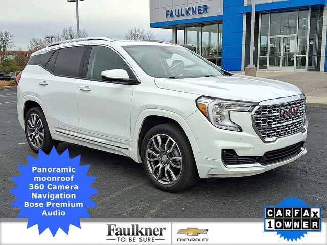 This Terrain Denali delivers premium comfort, advanced technology, and all-weather capability in a refined compact SUV. Finished in Summit White with a Jet Black leather interior, this Denali stands out with chrome accents, exclusive Denali styling, and a well-appointed cabin.