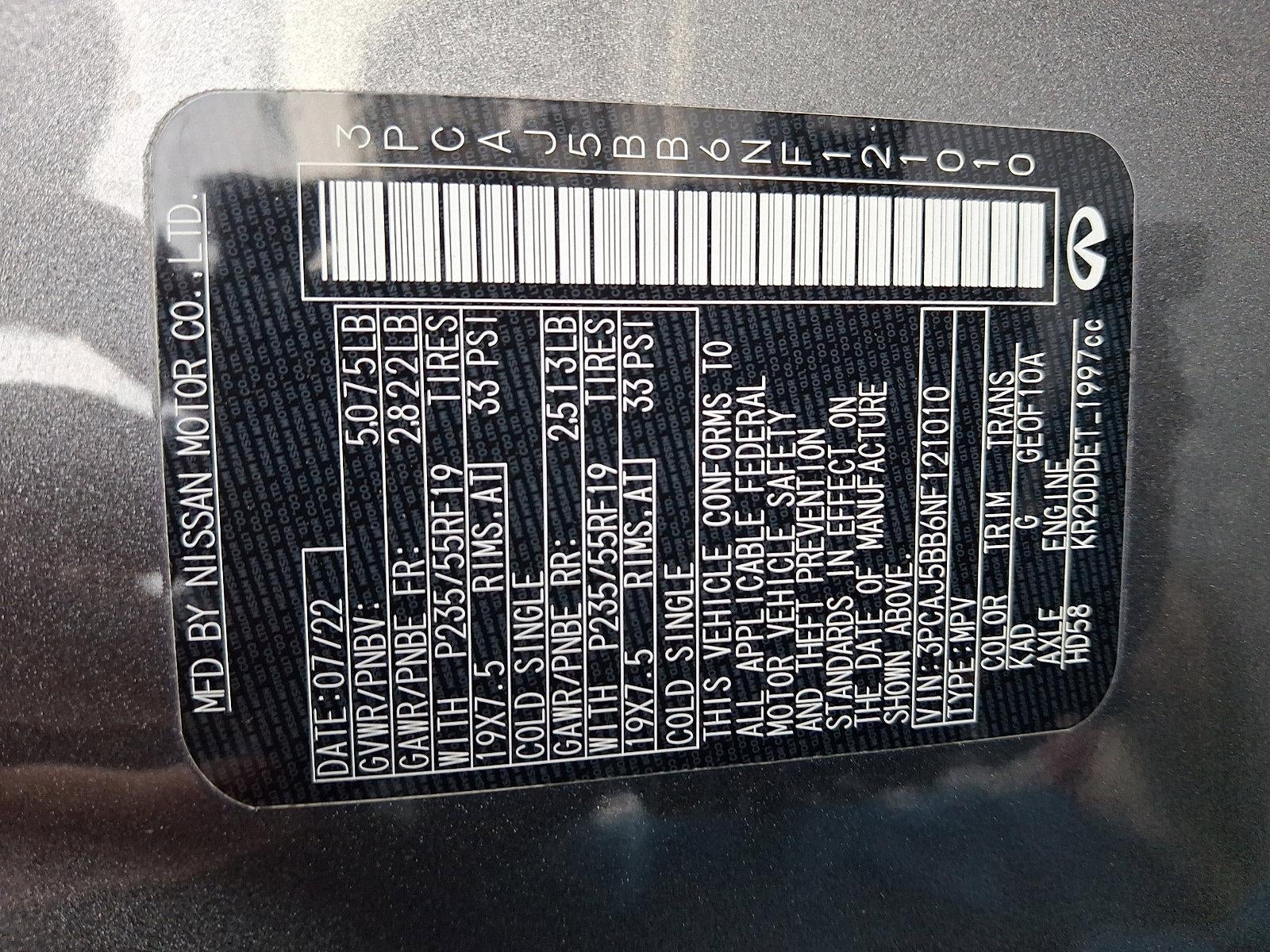Certified. 2022 INFINITI QX50 LUXE AWD I4 CARFAX One-Owner.