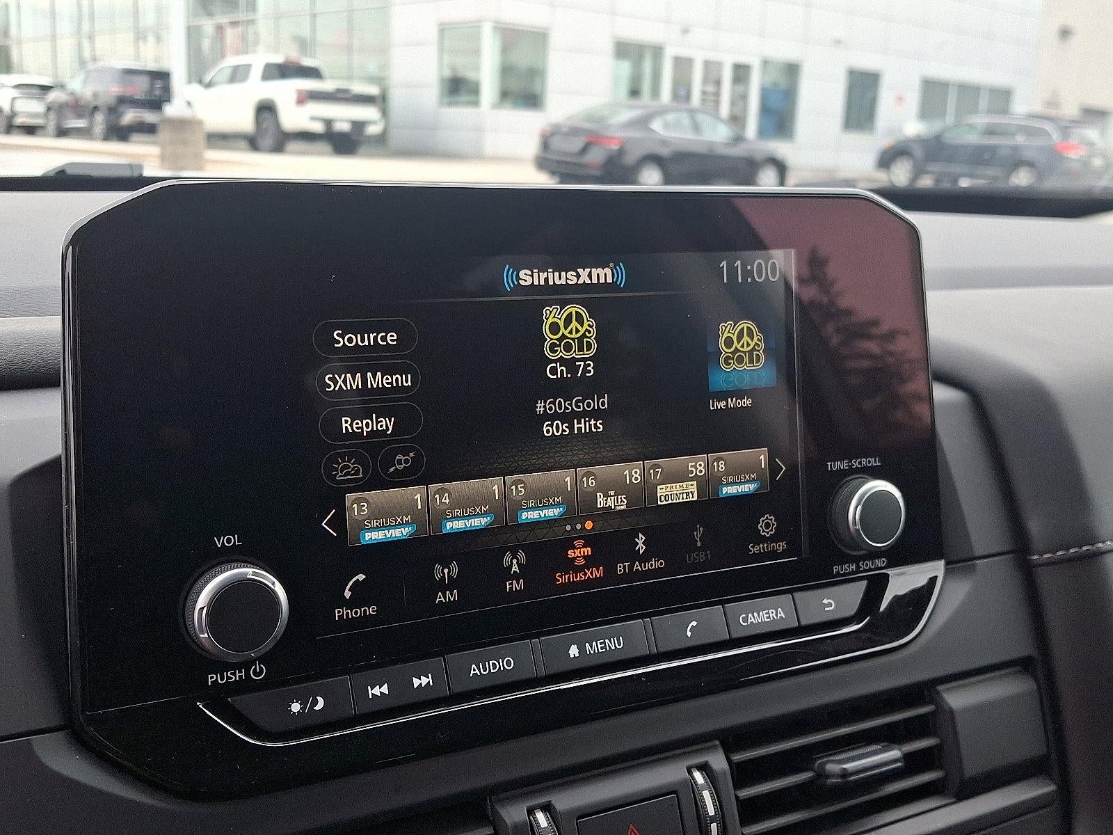 - Radio: AM/FM Audio System w/NissanConnect -inc: 6 speakers, Radio Data System (RDS), Apple CarPlay and Android Auto, 8" color display w/multi-touch control, SiriusXM satellite radio w/advanced audio features, 2 illuminated front USB connection ports (1 type A, 1 type C) for iPod interface and other compatible devices, Bluetooth® hands-free phone system and streaming audio, Speed-Sensitive Volume control (SSV), hands-free text messaging assistant and Siri Eyes-Free/Google Assistant voice recognition